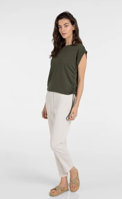 Deze comfortabele top heeft een ronde hals, korte mouwen en een normale pasvorm. De zijkanten zijn voorzien van verstelbare koorden, waarmee je de pasvorm en lengte subtiel kunt aanpassen voor…€ 49,95
