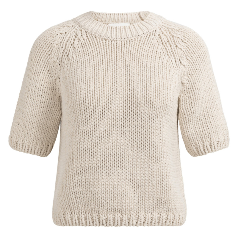 Deze grofgebreide trui is gemaakt van een stevige, zachte stof en heeft korte mouwen en een ronde hals. De raglaninzet en ribgebreide afwerking geven een nonchalante, eigentijdse uitstraling. De normale pasvorm maakt dit item perfect voor een casual look met een stijlvol accent.