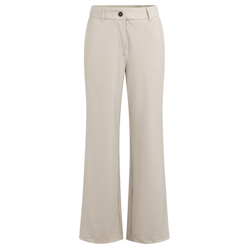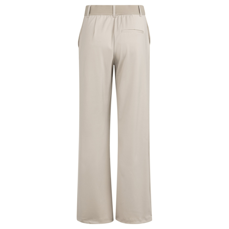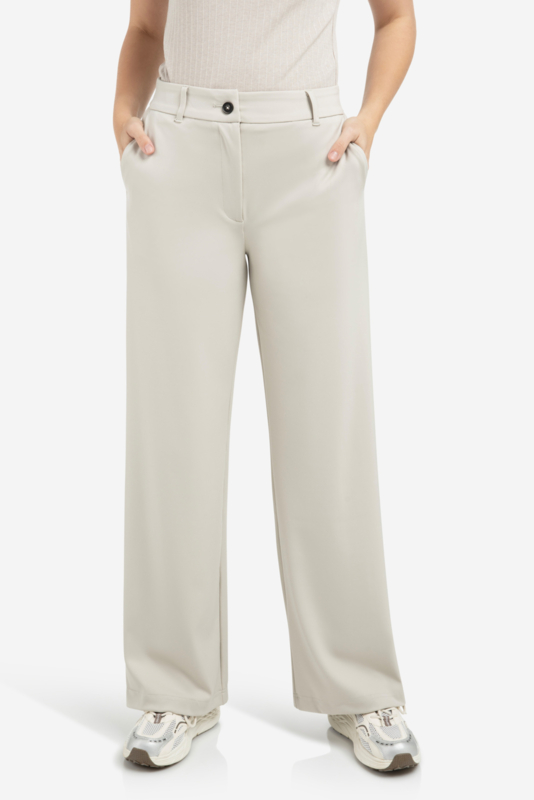 Deze comfortabele jersey broek heeft een elegante, wijde pasvorm en een hoge taille met elastische band. De soepele stof zorgt voor een ontspannen fit, terwijl de steekzakken en paspelzak achter functioneel zijn. Perfect te combineren voor een casual of chique look.