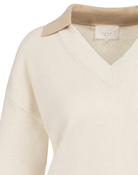 YAYA Zachte trui met V-hals contrasterende kraag en lange mouwen. € 79,95