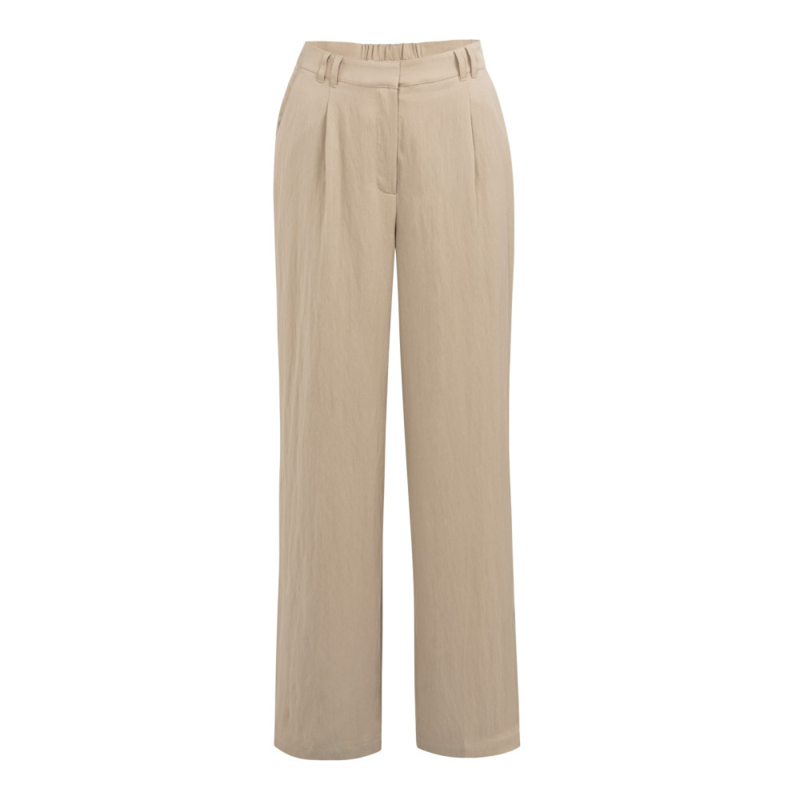 Deze luchtige broek is gemaakt van een soepele geweven stof en heeft een normale pasvorm met wijde pijpen. De plooien aan de voorzijde zorgen voor een elegante uitstraling, terwijl de elastische tailleband aan de achterkant extra comfort biedt. Voorzien van steekzakken en een paspelzak achter.
