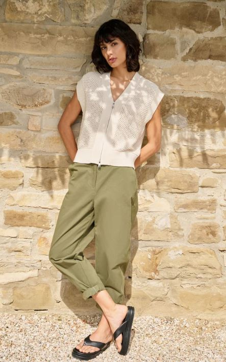 Deze comfortabele cargobroek is gemaakt van een zachte, soepelvallende geweven stof. Het model heeft rechte pijpen en plooien aan de voorkant voor een vrouwelijke…€ 89,952 kleuren